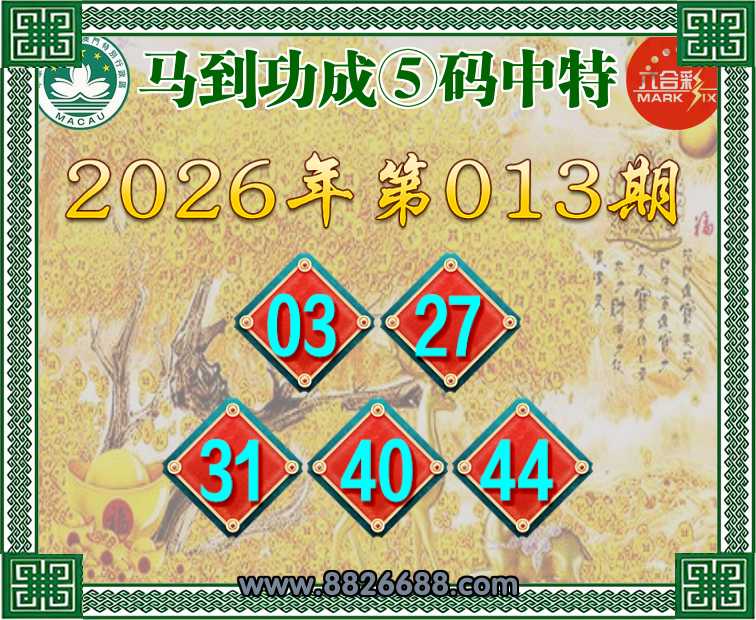 013期:【马到功成】 🚣⑤码中特🚣【03.27.31.40.44】开:01