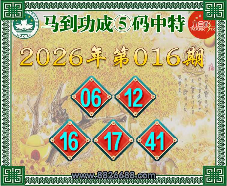 016期:【马到功成】 🚣⑤码中特🚣【06.12.16.17.41】开:06准上榜高手