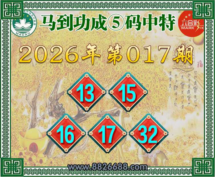 017期:【马到功成】 🚣⑤码中特🚣【13.15.16.17.32】开:32准上榜高手